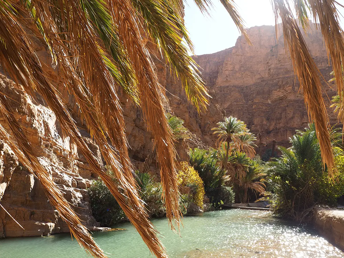- Explora las gargantas y los oasis de Ait Mansour, rodeados de palmeras y pequeños pueblos escondidos en el corazón de las montañas.